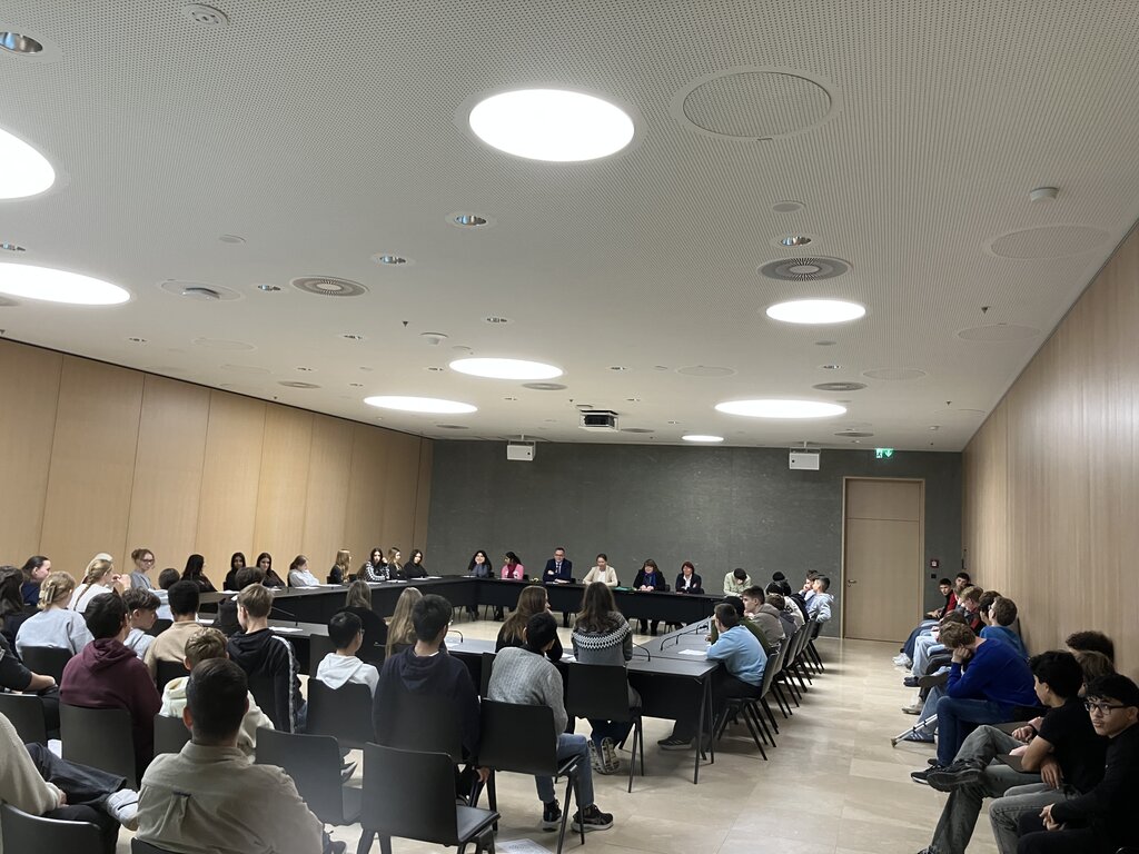 Im Anschluss fand ein ausführliches Abgeordnetengespräch statt. Unsere Gruppe sprach mit Julia Goll (FDP/DVP), Daniela Evers (Bündnis 90/Die Grünen), Gabriele Rolland (SPD) und Siegfried Lorek (CDU). Die vier Landtagsabgeordneten nahmen sich viel Zeit, um Fragen zu beantworten und über aktuelle politische Herausforderungen zu diskutieren.