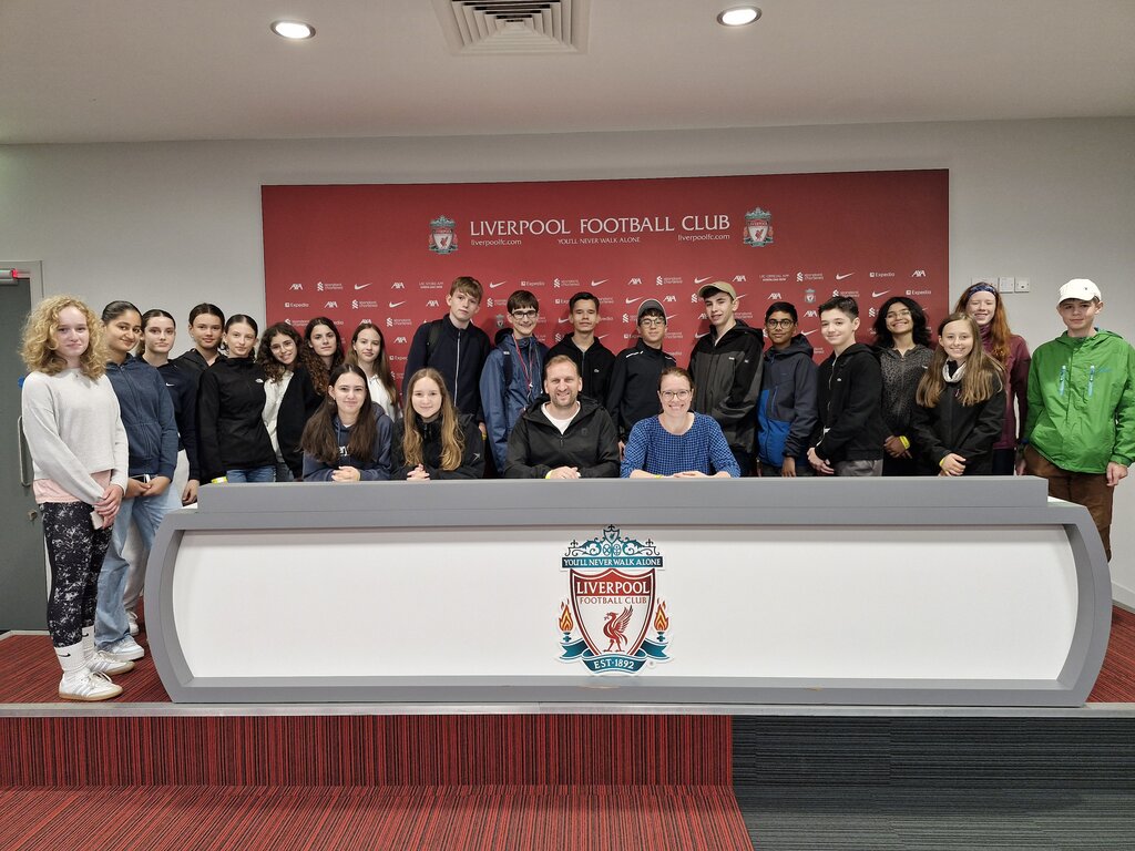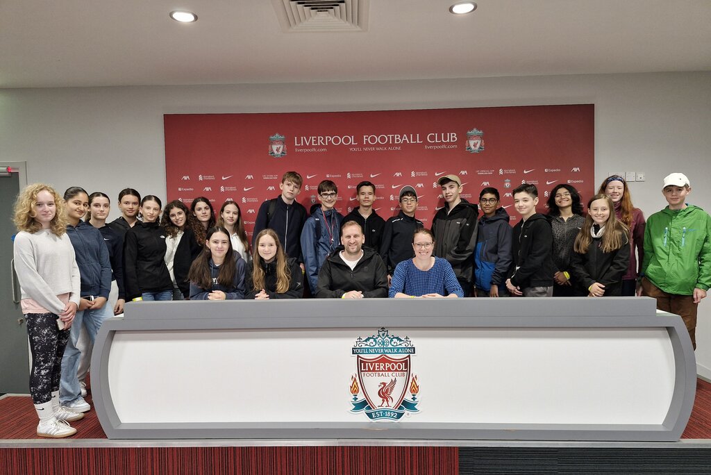 Die Anreise mit dem Flugzeug verlief problemlos und die 22 Schülerinnen und Schüler konnten abends bis 21 Uhr die Stadt erkunden. Später im Hostel wurden sogar schon neue Bekanntschaften geschlossen. Am Montag stand vormittags zunächst der Besuch des Museums „The Beatles Story“ an. In dem sehr schön gestalteten Museum, das von allen das Interesse weckte, konnten wir viele neue Dinge über die Beatles erfahren und später noch schöne Souvenirs kaufen. Herr Hambach zeigte uns dann noch mehr von der Stadt, bevor wir in die Mittagspause und einen Nachmittag zur freien Verfügung entlassen wurden. Die Freizeit wurde bei vielen zum Shoppen oder Spielen genutzt, was zusammen mit der Runde Werwolf am Abend ein guter Start in die bevorstehende Woche war. Dienstags besuchten wir das Stadion des FC Liverpool, worauf viele Fußballfans in der Klasse schon hingefiebert hatten. Es war sehr beindruckend, vor allem weil manche noch nie in einem Fußballstadion gewesen waren. Nachdem wir zurück in der Innenstadt waren und unser Mittagessen gegessen hatten, besuchten wir noch zwei Museen. Im „Museum of Liverpool“ standen uns Ausstellungen über Archäologie, die Geschichte Liverpools und verschiedene Galerien zur Verfügung. Außerdem gab es dort eine weitere Ausstellung über die Beatles, in der man Karaoke singen konnte, was wir uns natürlich nicht entgehen ließen. Das Maritime und Slavery Museum gab uns einen tieferen Einblick über Themen wie Sklaverei, die Titanic und das Leben an Bord von Schiffen. Abends spielten wir dann eine weitere Runde Werwolf, die zu hitzigen Diskussionen führte. Am Mittwoch zeigte Herr Hambach uns noch mehr von der Stadt und wir besichtigten die „Liverpool Cathedral“. Daraufhin hatten wir ein paar Stunden Freizeit, bis wir am Nachmittag mit der Fähre über den Fluss Mersey nach Birkenhead fuhren, wo wir etwas am Ufer entlangliefen und Liverpool vom anderen Flußufer sehen konnten. Nach dem Abendessen im Hostel gingen ein paar Schülerinnen und Schüler dann nochmal in die Stadt um den Tag ausklingen zu lassen. Der letzte Tag vor der Abreise bot uns dann noch die Wattwanderung, die definitiv das Highlight der Reise war. Zuvor war jedoch packen, bei manchen noch ein schneller Trip in die Stadt angesagt. Für die Wanderung fuhren wir nach West Kirby und begaben uns auf den Weg zu zwei Inseln auf denen wir Pause machten, bevor wir den Rückweg antraten. Die Schüler waren begeistert, die einen wegen der Liebe zur Natur und dem Meer, die anderen wegen der vielen Krabben die sie zusammen mit Herr Hambach fanden. Zudem führten wir währenddessen vielfältige Gespräche und lernten uns so mehr kennen. Insgesamt machte die Wanderung sehr viel Spaß und war somit ein voller Erfolg. Für den letzten Abend hatten Frau Knott und Herr Hambach noch ein „Pub Quiz“ für uns vorbereitet, bei welchem wir sehr schwierige Fragen so gut wie möglich beantworten mussten. Danach gingen wir alle sehr erschöpft vom Tag, aber aufgeregt vor der Rückreise ins Bett. Der Flug zurück nach Deutschland am Freitag wurde wieder gut von allen überlebt, jedoch war die darauffolgende Reise mit verschiedenen Bahnen sehr zäh und anstrengend. Letztendlich sind wir aber alle wohlbehalten wieder angekommen und können glücklich auf unsere vielen Erlebnisse zurückblicken.