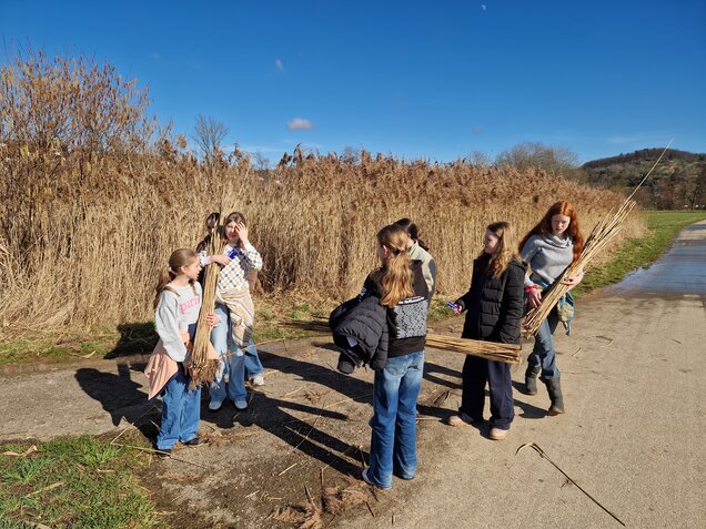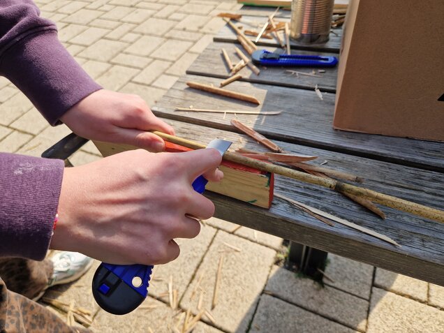 Die Nachhaltigkeits-AG baut Bienenhotels aus Schilfrohr