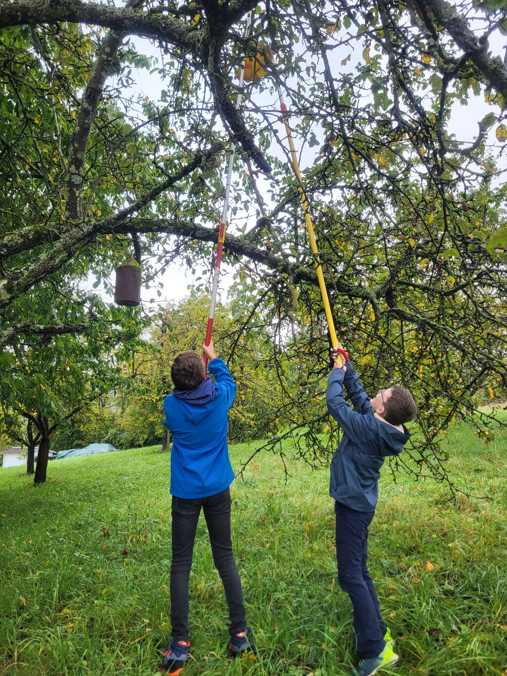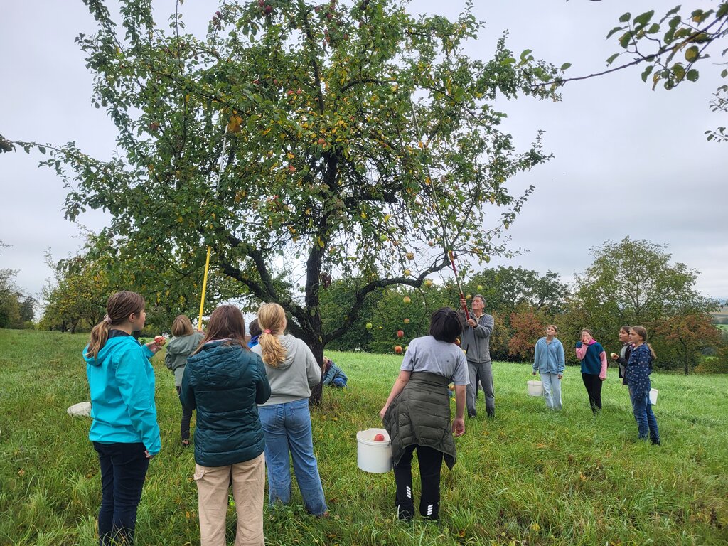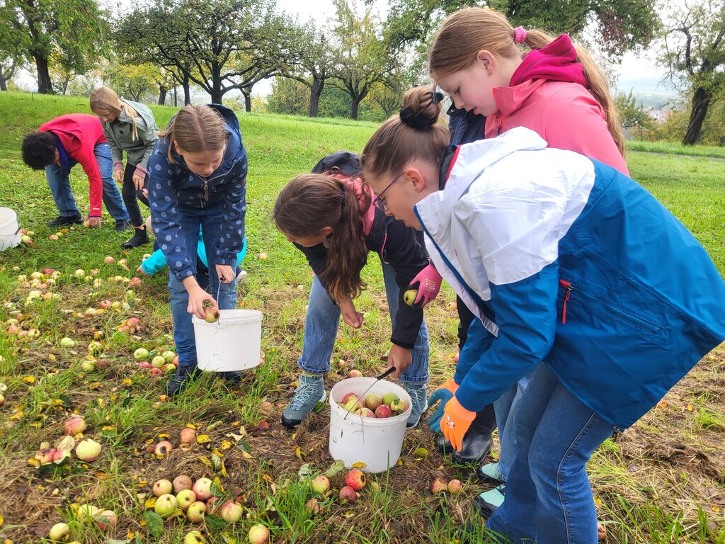 Sofort war klar, dass es sich dabei um eine tolle Aktion handelt, an der die Klasse 6b gemeinsam mit dem Klassenlehrerinnenteam, Frau Maier und Frau Liß, teilnehmen wollte. Jedes Jahr organisiert Herr Fohr gemeinsam mit der Bürgerstiftung Winnenden das Projekt „Streuobstsammeln für die soziale Jugendarbeit“.