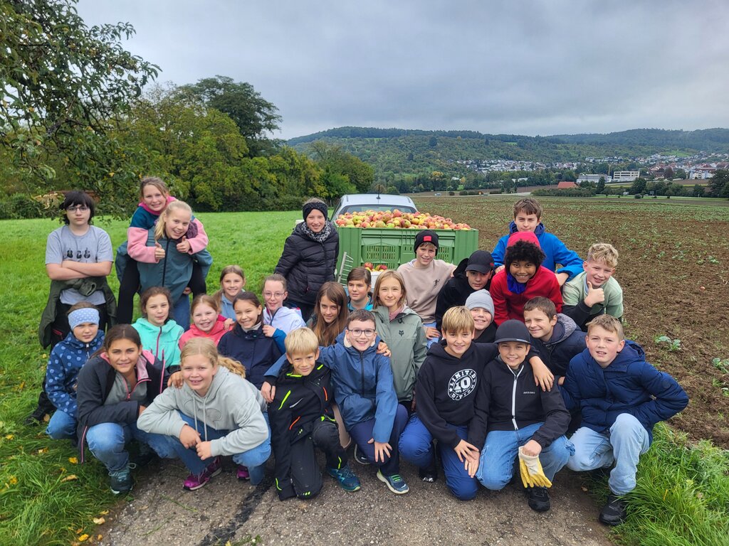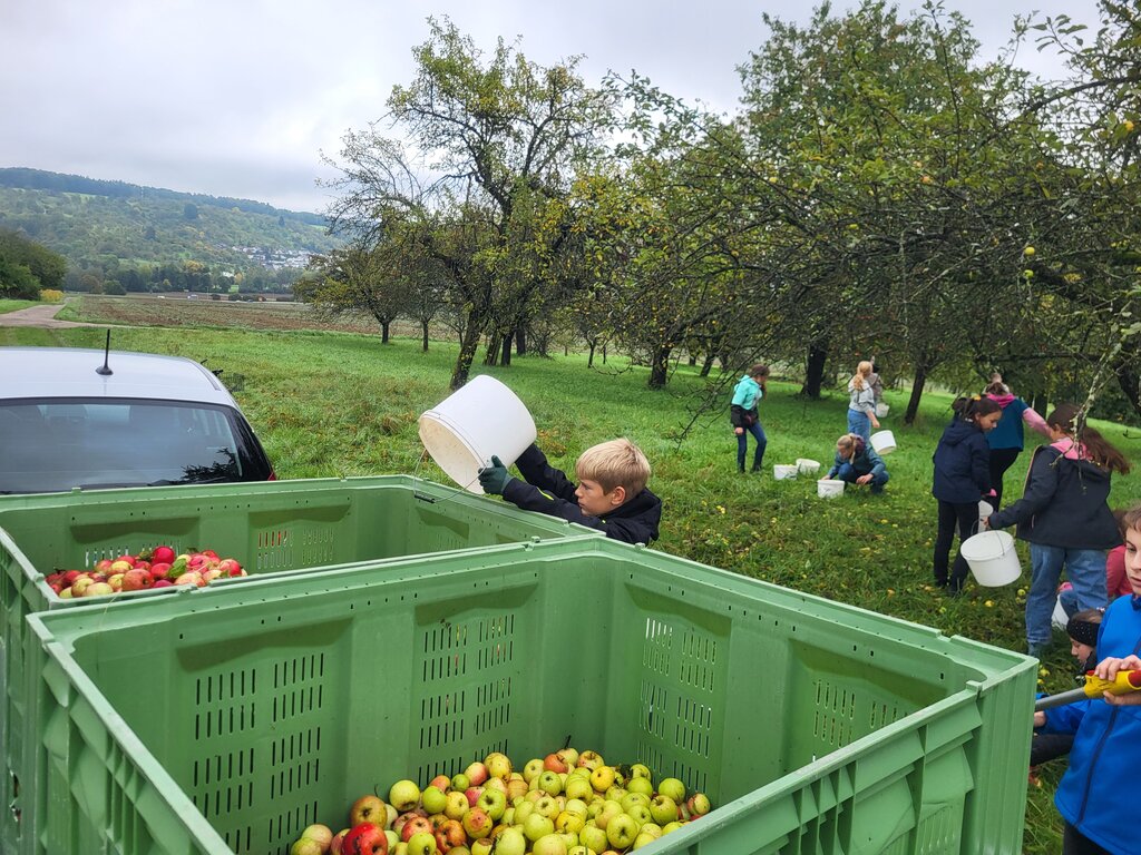 Klasse 6b sammelt sagenhafte 879 kg Äpfel auf den Streuobstwiesen