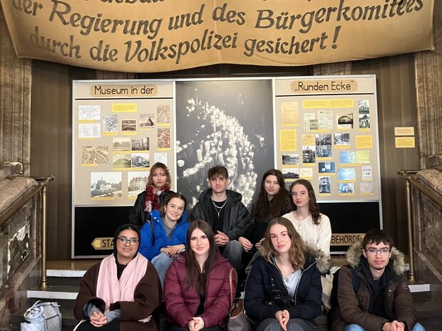 Ein besonderer Höhepunkt waren die Gespräche mit den Zeitzeuginnen und Zeitzeugen Rainer Müller, Sonja Sprößig und Irmtraud Hollitzer, die aus ihrem persönlichen Erleben berichteten – von Friedensgebeten, repressiver Heimerziehung und Montagsdemonstrationen bis hin zum Mut, sich offen gegen das Regime zu stellen. Mit dem Audioguide „Leipzig ’89“ erkundeten die Schülerinnen und Schüler zentrale Orte der Revolution direkt im Stadtraum.