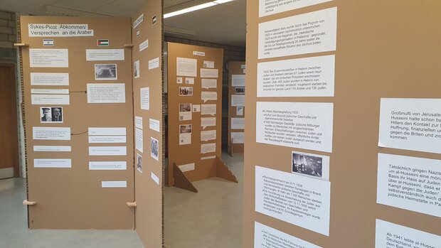 Vom 17. Juni bis zum 12. Juli 2024 präsentierte die Fachschaft Geschichte in Kooperation mit den Fachschaften Gk und Religion eine eindrucksvolle Ausstellung zum Nahostkonflikt. Die Ausstellung wurde von einem Kurs des Ebelu in Stuttgart entwickelt und mit dem Ulli-Thiel-Friedenspreis ausgezeichnet. Entstanden ist sie in Zusammenarbeit mit dem langjährigen ARD-Korrespondenten Jörg Armbruster. Auf einem Rundgang durch verschiedene Epochen erhielten die Besucherinnen und Besucher einen strukturierten Überblick von den Anfängen des Konflikts bis zur Gegenwart. Jede Station beleuchtet die Ereignisse sowohl aus israelischer als auch aus palästinensischer Sicht und macht die Komplexität des Themas nachvollziehbar. Ergänzt wird die Ausstellung durch Porträts wichtiger Persönlichkeiten, interaktive Elemente und Stimmen aus unterschiedlichen gesellschaftlichen Gruppen. Schülerinnen und Schüler können die Inhalte mit einem Fragebogen erkunden oder an einer vorbereiteten Führung teilnehmen. Ziel der Ausstellung war es, ein vertieftes Verständnis für einen der bedeutendsten Konflikte unserer Zeit zu fördern und Raum für reflektierte Diskussionen zu schaffen.